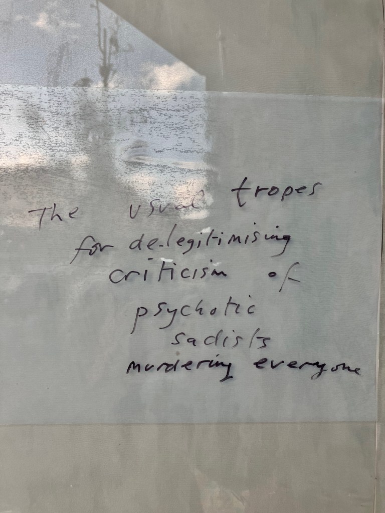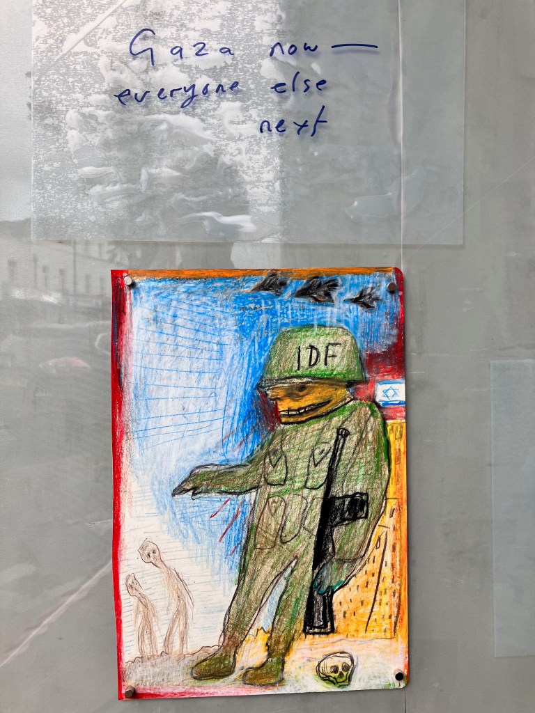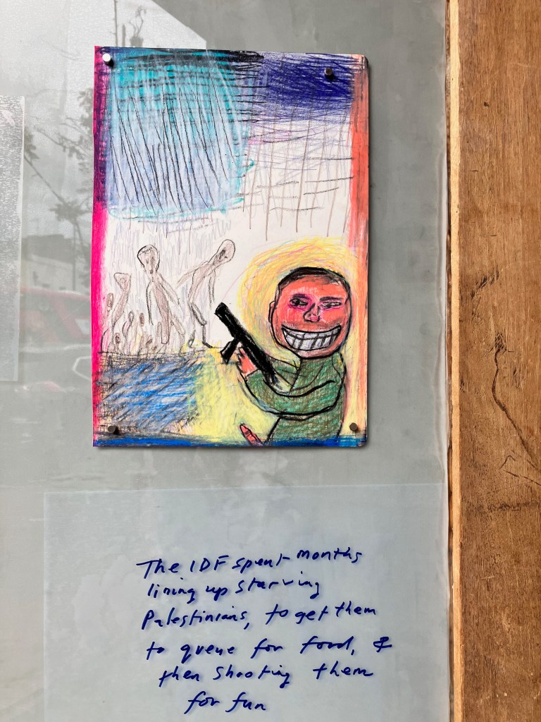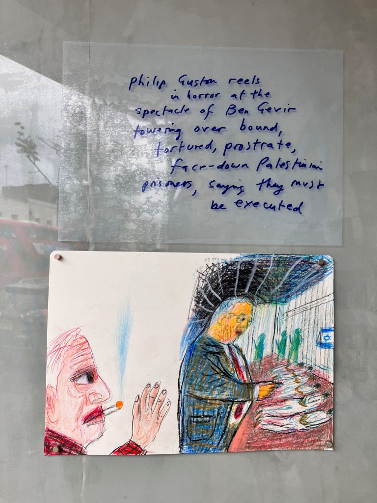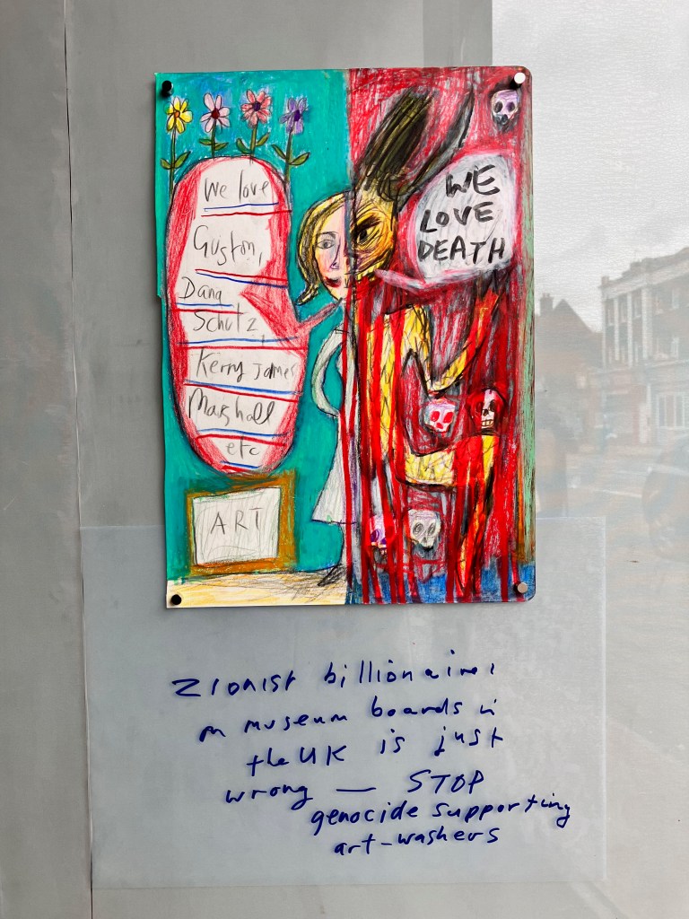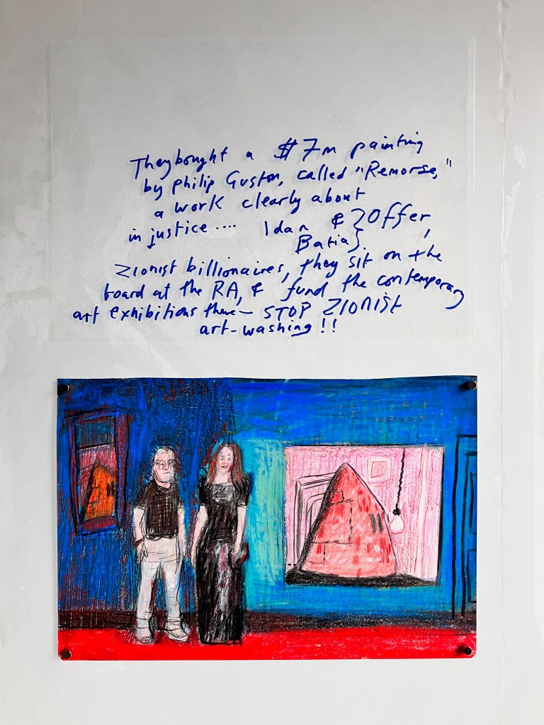 Mike Bloomberg, art washing Israel supporting billionaire, former Mayor of New York, chucking tens of millions around in the UK art-world-& JJ Charlesworth, art intellectual who sneers at the left for criticising Israel-both bathe in ideology at the bloody Frieze art fair.