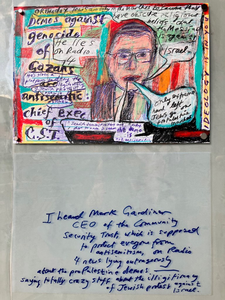 1. I heard Mark Gardiner CEO of the community security trust, which is supposed to protect everyone from antisemitism , on R4 news lying outrageously about the pro-Palestinian demos-saying totally crazy stuff about the illegitimacy of Jewish protest against Israel.