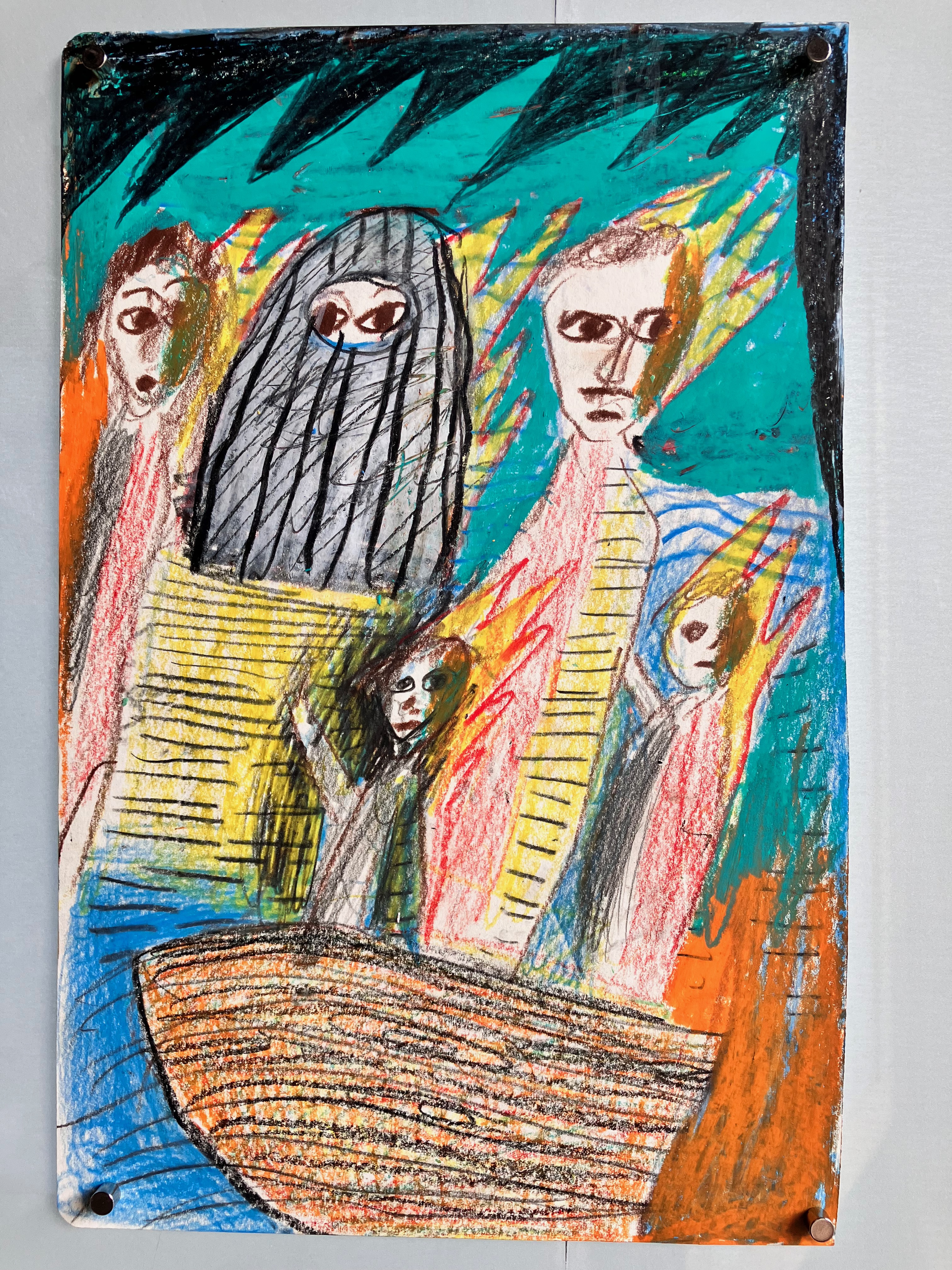 I use coloured pencils and small bits of paper but I think of what I do as paintings. Pencils allow me by some kind of superstitious childish primitive pseudo rule to paint. As it happens I do also paint with real paints but I feel the drawings are the furnace. All power comes from them. I use a children’s oily crayon called Woody Stabilo as well as the basic pencils – which are usually Faber Castell.