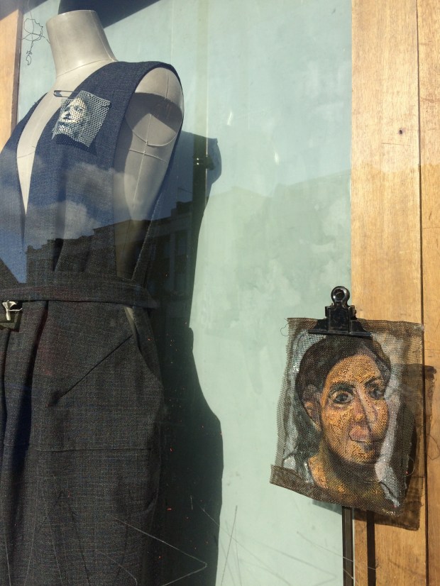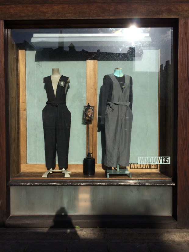 she who wears the trousers kimono wool jumpsuit and rejigged form in overdyed silk. With pockets…ha wire badge perforated badge and tin pin Related