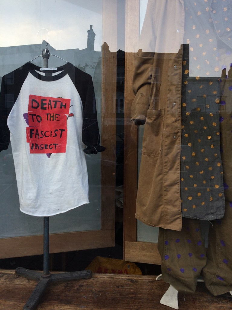 workers…wear ‘death to the fascist insect…’ t.shirts martin maloney…way back when at Anthony D’Offay archive @window135..super clothes for work. 9th October 2021 Related
