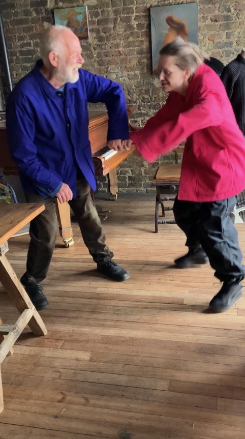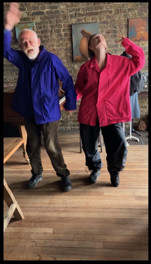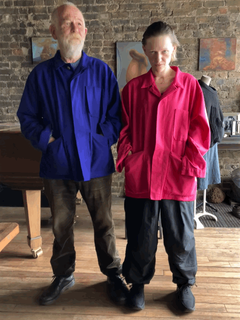 jacket off… the way to start the weekend! Agnieszka Szczotka & Tim Jones showing off their jackets Agnieszka made her jacket with Meenas tutelage, Meena made Tims jacket. Jacket Off! Related