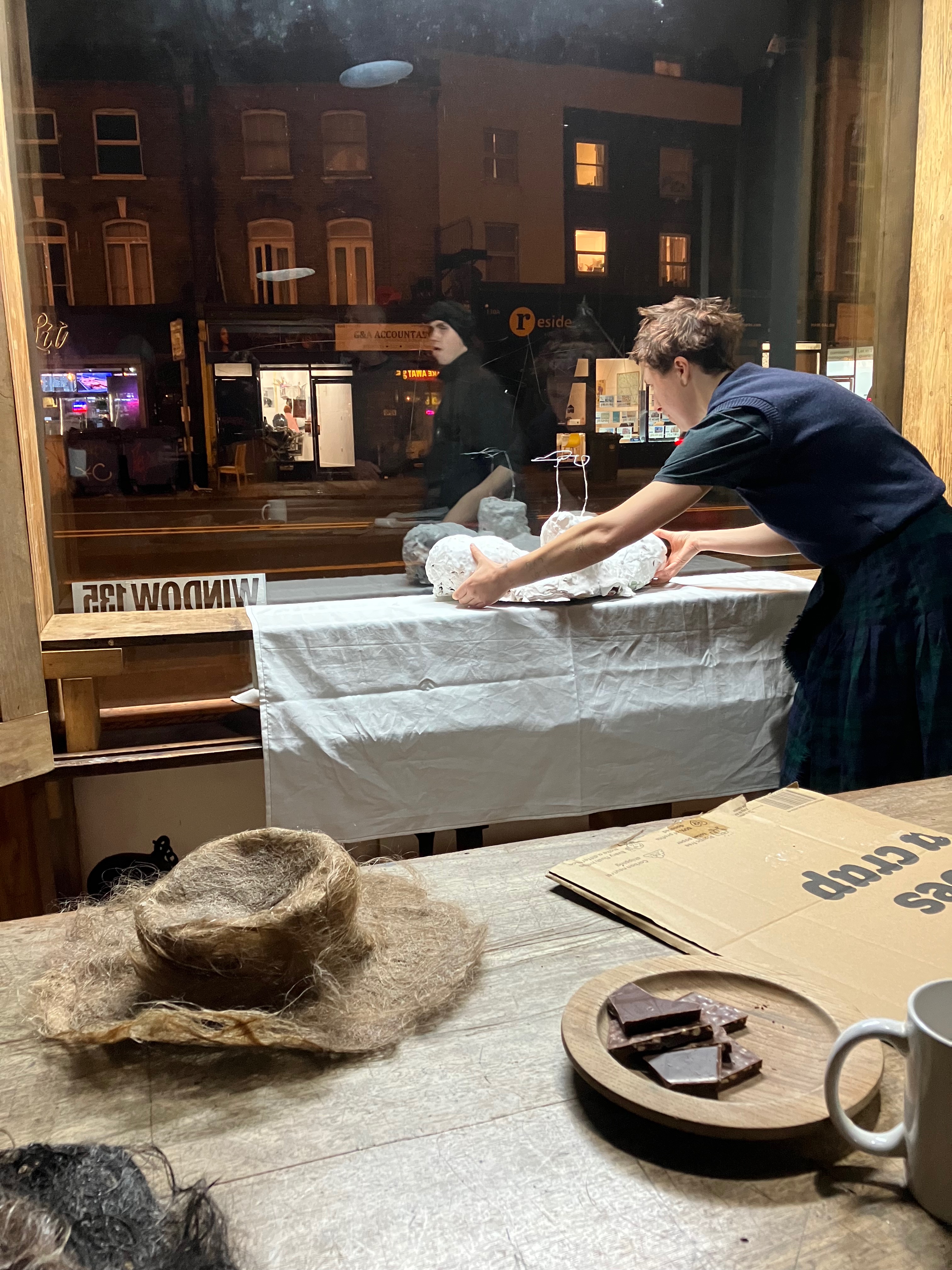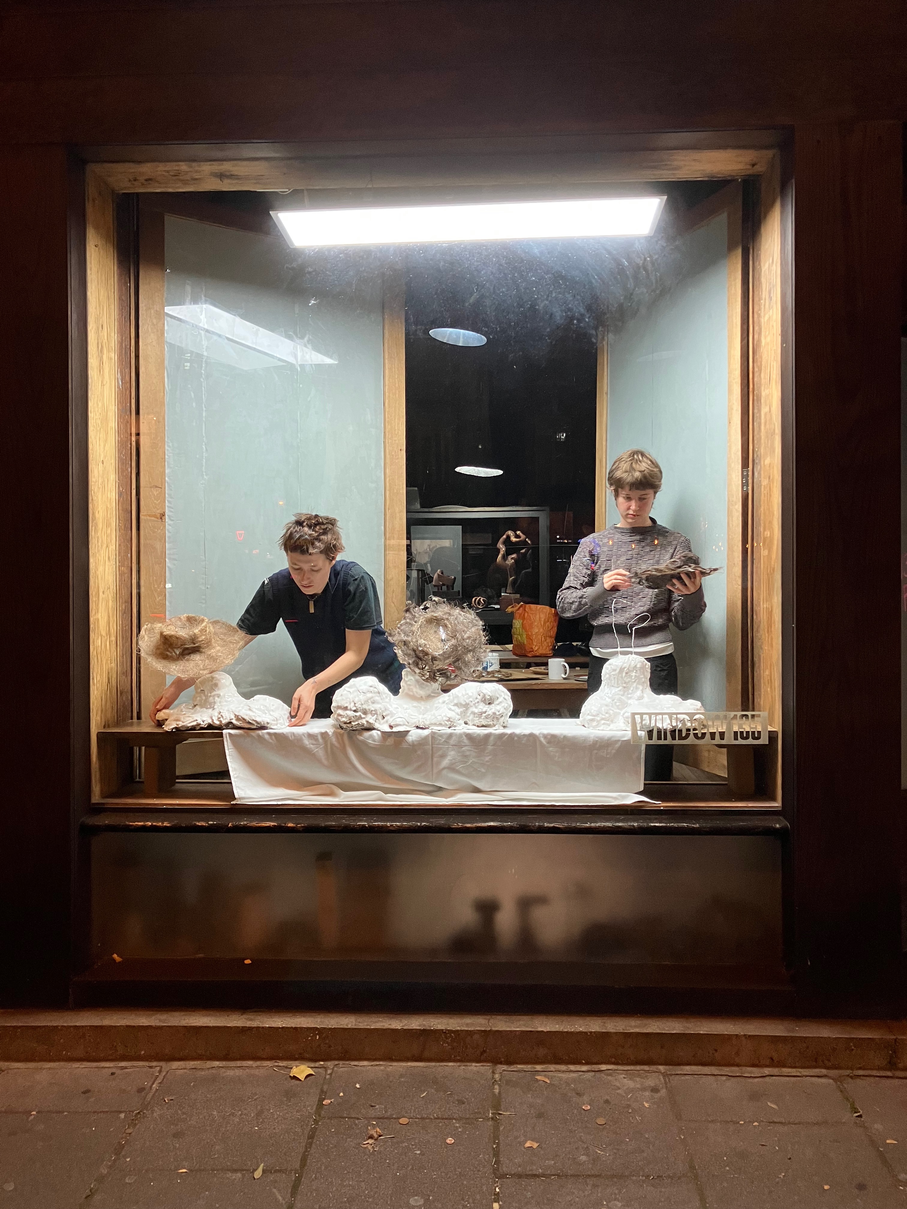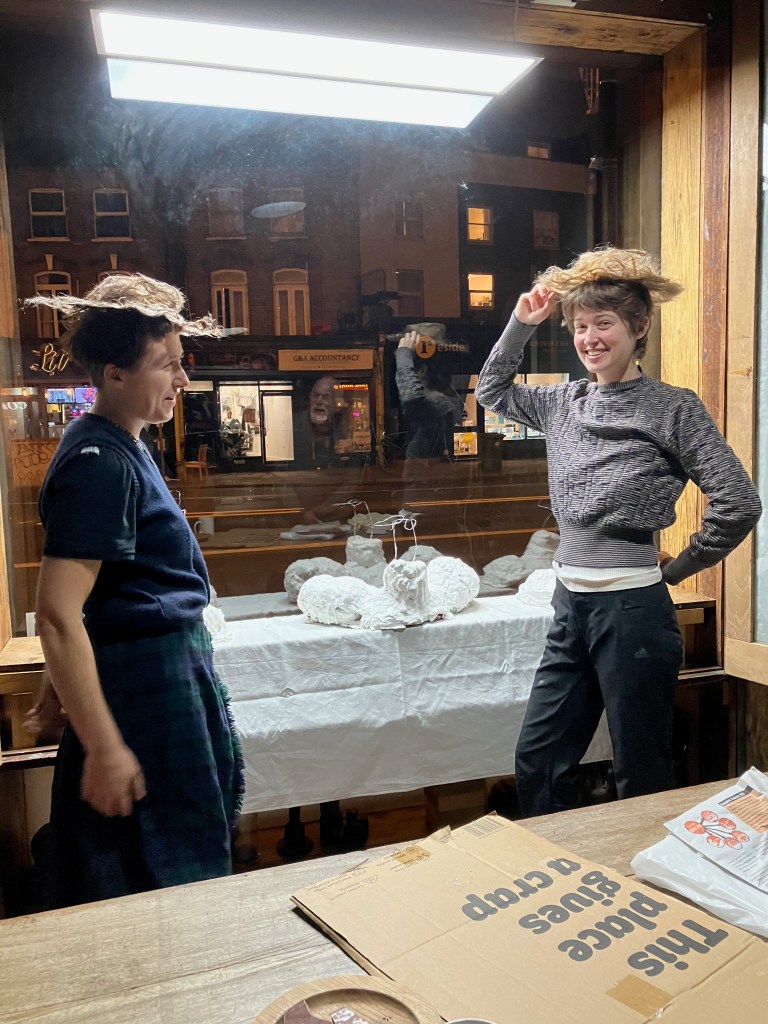 hair hat… meringue torso Rowan Kelly and Honor Cecil 10.11-21.11.24 day of the install…10.11.24 many thanks to Rowan & Honor for the work and the party 21.11.24. Many visited…it was good fun. Related